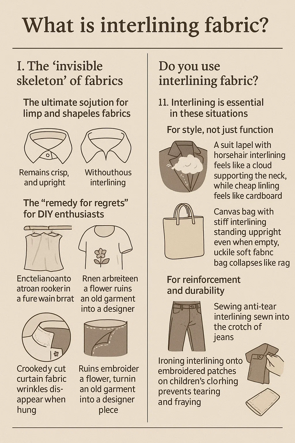 Añadiring interlining to a chiffon dress makes it feel like umbrella fabric, preventing it from flowing in the wind.